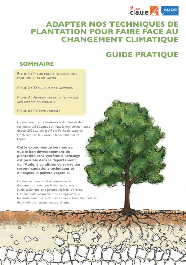 Le CAUE de l'Aude met à la disposition des habitants, des élus et des techniciens, son guide pratique de plantation "Adapter nos techniques de plantation pour faire face au changement climatique".