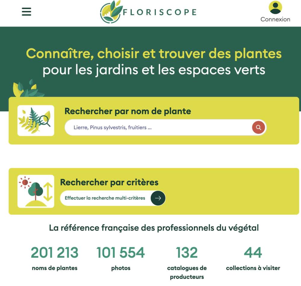 Floriscope est une base de données en ligné qui permet à tous les professionnels et futurs professionnels de connaître, choisir et trouver leurs végétaux.