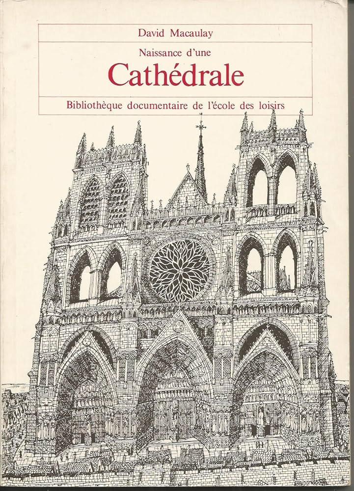 Ouvrage très bien illustré de dessins en noir et blanc, montrant toutes les étapes de la construction d'une cathédrale.